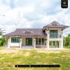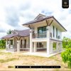 แบบบ้านนี้ให้ความรู้สึกอบอุ่นด้วยการเลือกใช้โทนวัสดุที่เป็นธรรมชาติ พร้อมดีไซน์หลังคาทรงไทยประยุกต์ที่ช่วยให้บ้านดูโดดเด่นและเหมาะกับสภาพอากาศเขตร้อนของประเทศไทย