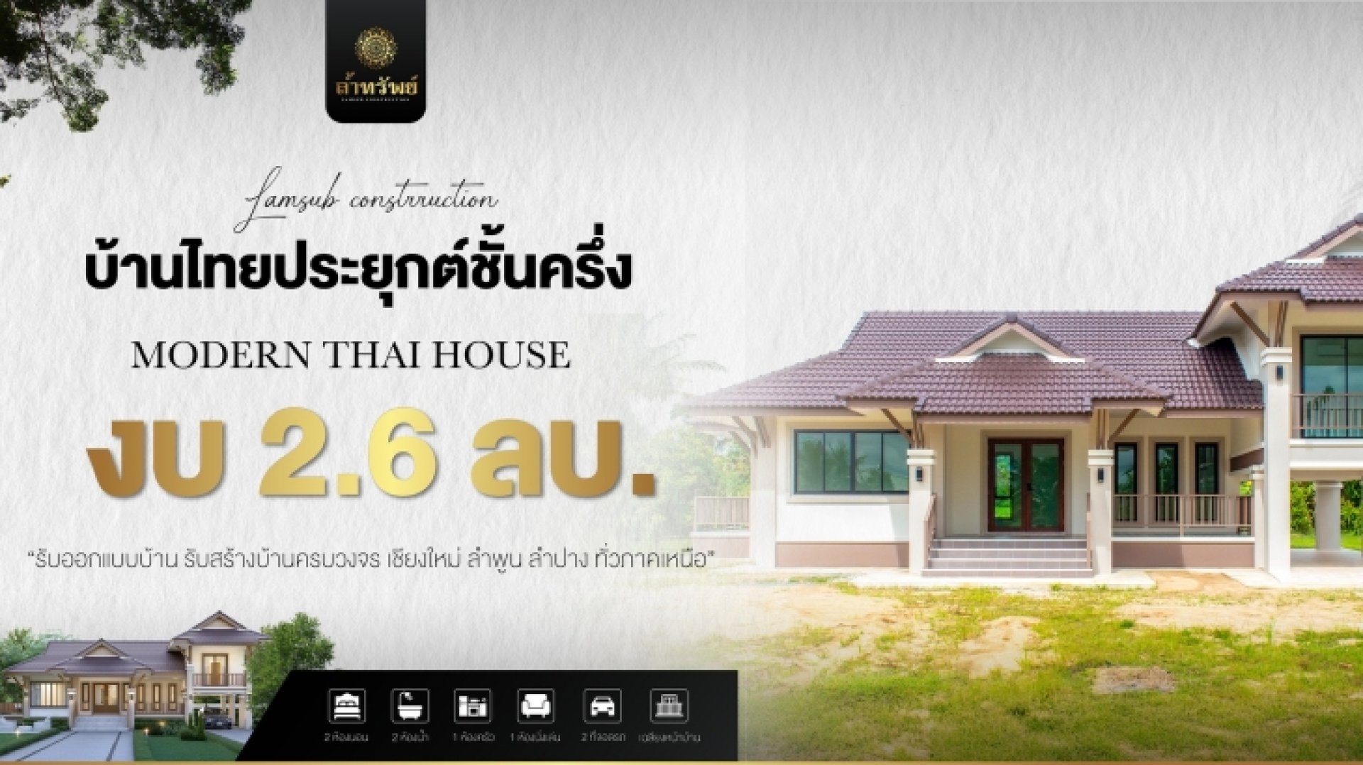 งบประมาณก่อสร้างเริ่มต้นที่ 2.6 ล้านบาท พร้อมบริการดูแลครบทุกขั้นตอนโดยทีมงานล้ำทรัพย์คอนสตรัคชั่น ตั้งแต่สำรวจพื้นที่ ออกแบบ ไปจนถึงส่งมอบบ้านอย่างสมบูรณ์