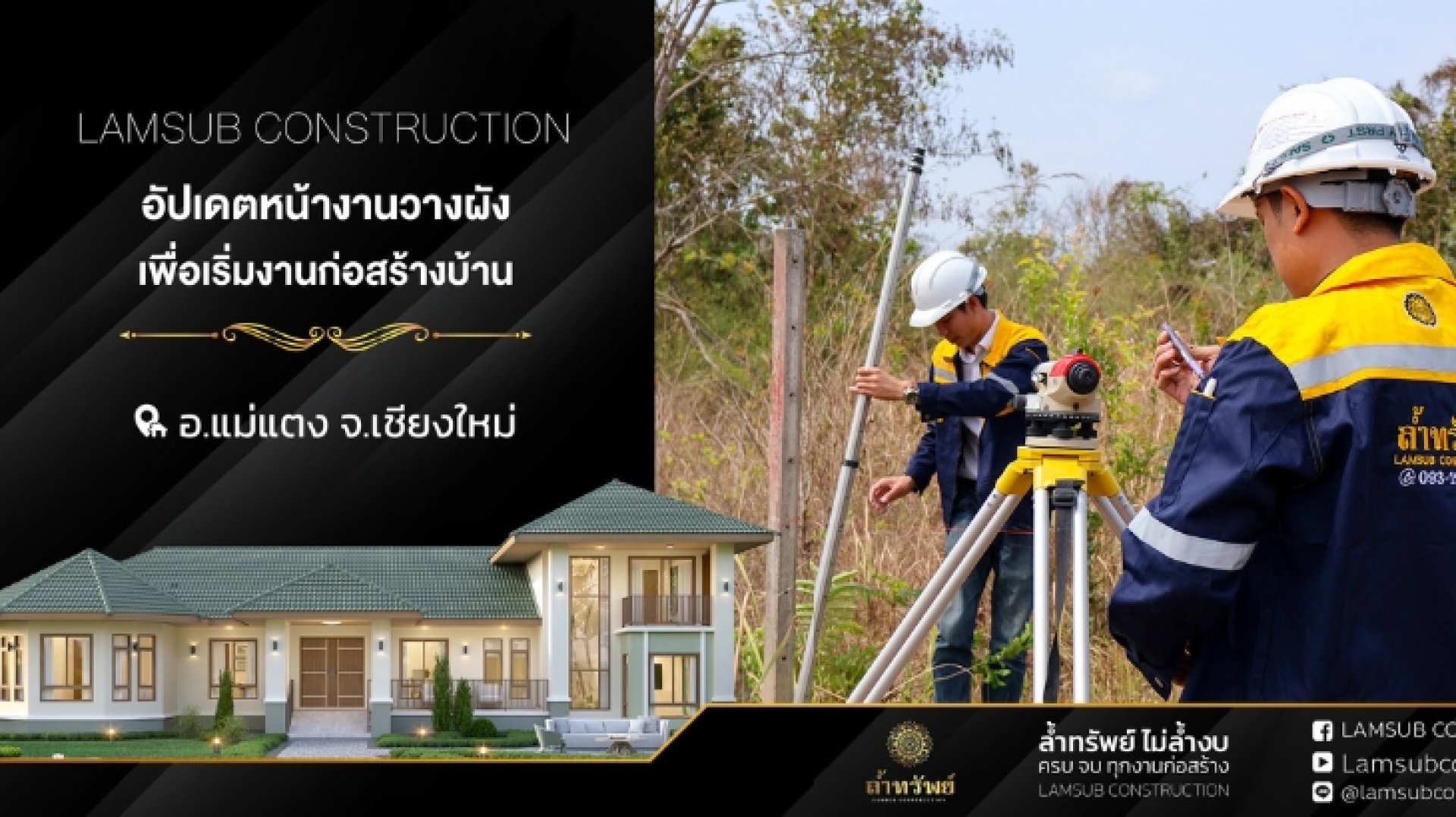เริ่มต้นอีกหนึ่งโปรเจกต์สำคัญกับล้ำทรัพย์คอนสตรัคชั่น ทีมงานเข้าดำเนินการเปิดหน้างานและวางผังก่อสร้างบ้านพักอาศัยสไตล์ Contemporary Style ในพื้นที่ตำบลสันมหาพน อำเภอแม่แตง จังหวัดเชียงใหม่ เรียบร้อยแล้ว จากรูปจะเห็นทีมช่างกำลังใช้กล้องระดับสำรวจ (Total Station) วางผังอย่างละเอียดและแม่นยำ ก่อนที่บ้านในฝันของลูกค้าจะเริ่มก่อร่างสร้างขึ้นจากพื้นดิน